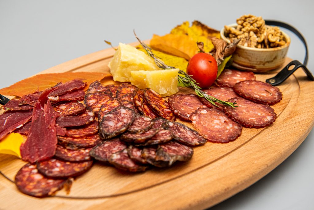 Platou vânătoresc Cârnați de vânat cu boia, pastrami de cerb, salam de vânat scânteie, salam de vânat uscat, cârnați de vânat simpli, brânză maturată de Horezu, […]